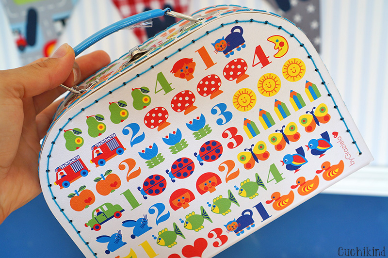 Der Koffer ist so niedlich, er dient bei uns auch mehr der Dekoration als der Nutzung, da er aus Pappe ist und nicht allzu stabil. Aber er bringt so viel Farbe ins Zimmer und wir lagern kleine Figuren darin. Leider ist er gerade nicht mehr verfügbar, aber es gibt so viele schöne Sachen von byGraziela, die alle Farbe ins Kinderzimmer bringen. Ich habe euch mal eine Box verlinkt.