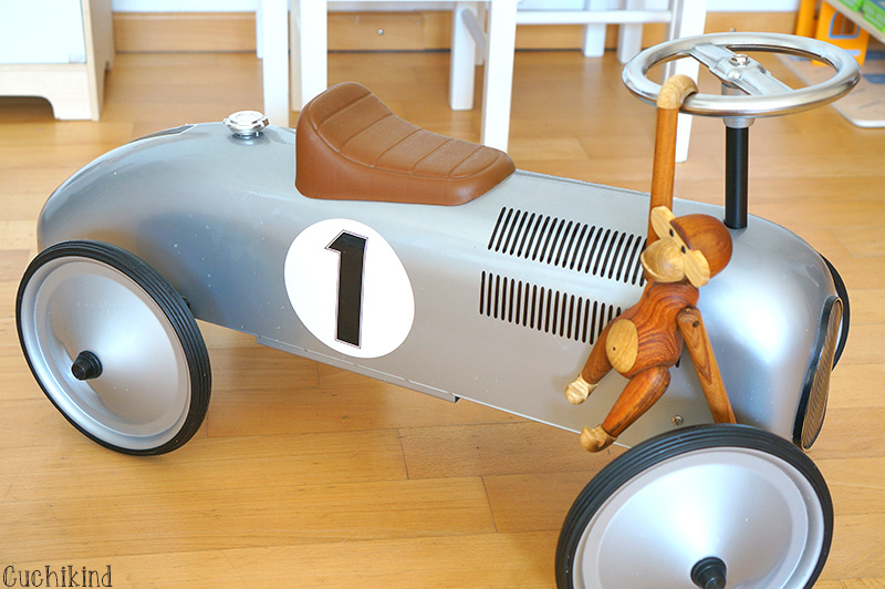 Das ist eines unserer ältesten Dekoteile, das wir schon vor Finns Geburt gekauft haben. Wir waren damals bei Yellow und wollten Möbel kaufen und da stand das so in der Ecke rum. Mein Mann hat sich ein bisschen verliebt und schwupps, jetzt steht es hier. Finn fährt damit auch gerne durch die Wohnung, es ist wirklich sehr stabil.