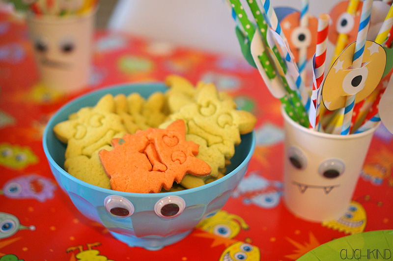 Außerdem hatte ich für die bunten Papierstrohhalme Monsteraugen ausgeschnitten und mit zwei Schlitzen versehen. Hier könnt ihr die Monsteraugen in vier Farben herunterladen.