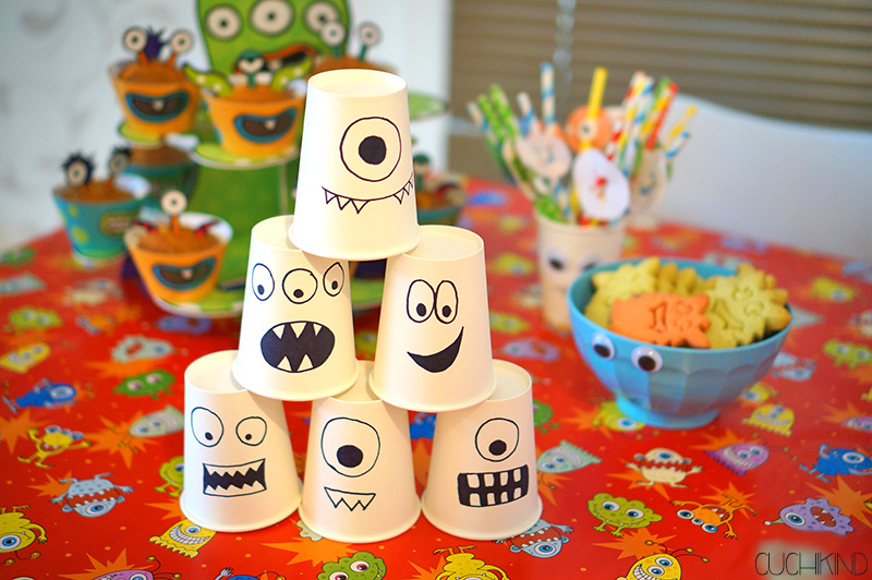 Am Samstag sind bei uns 7 elternlose Kinder eingefallen und haben sich auf unsere Monsterdeko gestürzt. Naja, ganz so dramatisch war es nicht, eigentlich war es sogar sehr nett. Die Einladungskarten zur Monsterparty habe ich euch hier schon gezeigt. Tatsächlich kamen einige der Kinder mit einem Tattoo am Arm, anderen war es nicht geheuer und wir haben sie natürlich auch so reingelassen.