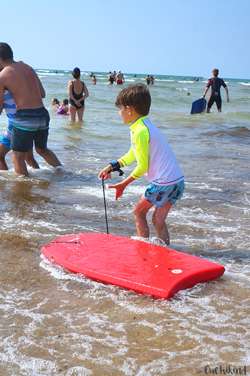 Gegen Abend sind wir dann in Messanges angekommen und haben unser Haus bezogen. Es ging alles total problemlos und am nächsten Tag sind wir gleich erstmal an den Strand. Der liegt hinter einer kleinen Düne, ganz untouristisch mit einem Restaurant und einer Surfschule oben. Ein Abschnitt wird von Rettungsschwimmern bewacht, drumherum gesurft. Und das kann man dort echt extrem gut. Ich habe einen dreitägigen Kurs gemacht und konnte am Ende auf dem Brett stehen, obwohl ich das vorher noch nie gemacht hatte. Aber auch mit dem Bodyboard macht es sehr viel Spaß. Bei Ebbe entstehen kleine Inseln und Seen und die Kinder waren stundenlang am Buddeln.