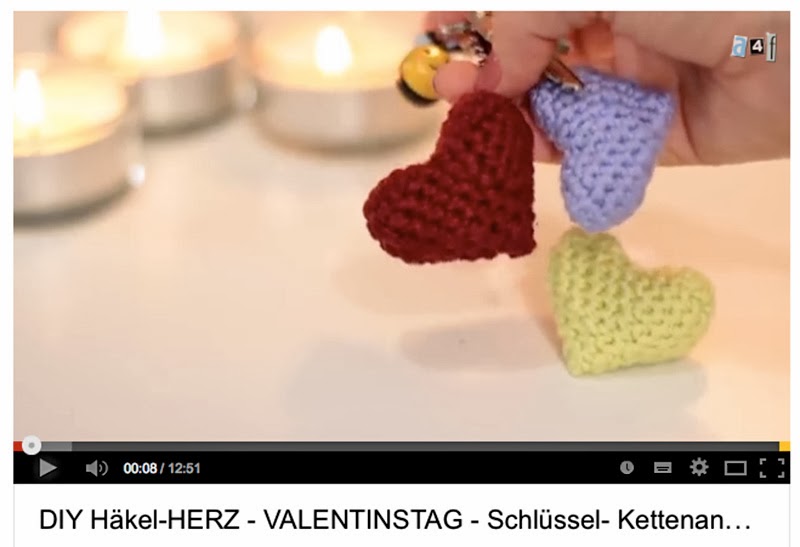 Damit ihr auch noch was Schönes für euren Valentin zaubern könnt, habe ich euch ein paar Videos bei youtube herausgesucht. Zuerst mal das Video, in dem Schritt für Schritt gezeigt wird, wie man das Herz häkelt. Der Kanal Alive4fashion zeigt immer wieder nette DIYs, schaut doch öfter mal rein.