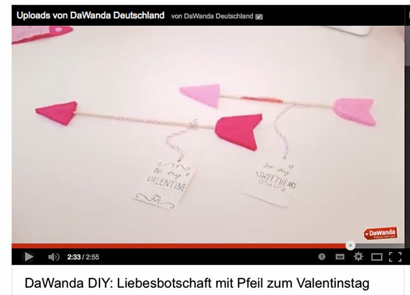 Der Dawanda-Kanal lädt verschiedene Youtuber ein, ihre DIY-Ideen vorzustellen. Hier findet ihr zum Beispiel eine kurze Bastelanleitung, wie man einen Liebespfeil herstellen kann.