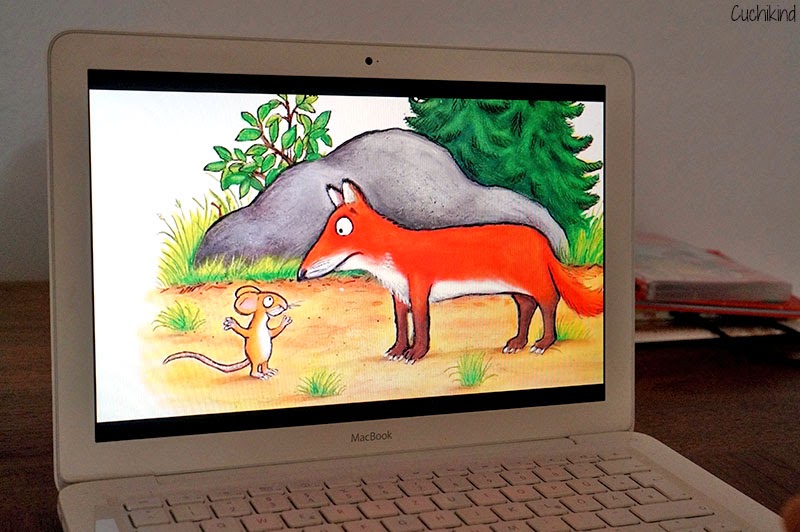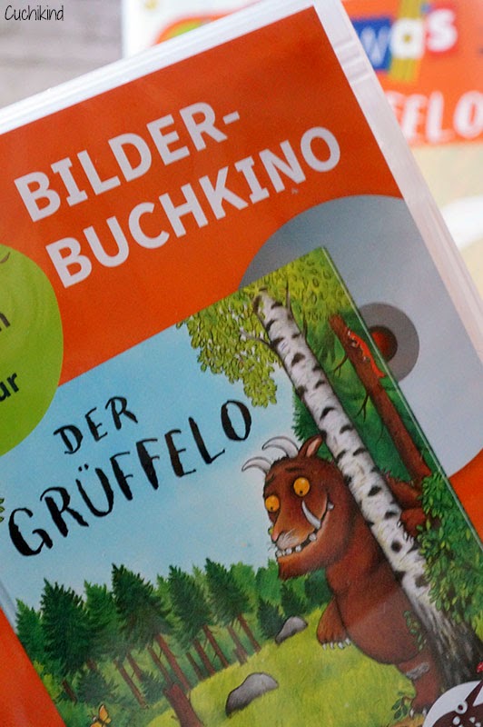 Wir haben sogar noch ein kleines Paket bekommen, in dem auch eine DVD mit dem Grüffelo-Bilderbuchkino war. Hier wird das Buch in Bildern erzählt. Wenn man möchte, kann man den Ton weglassen und das Kind erzählen lassen. Eine sehr nette Idee.