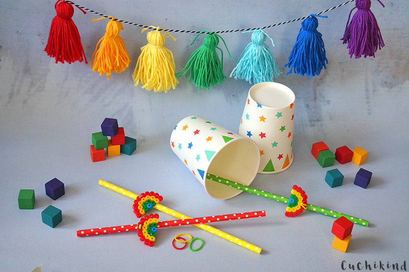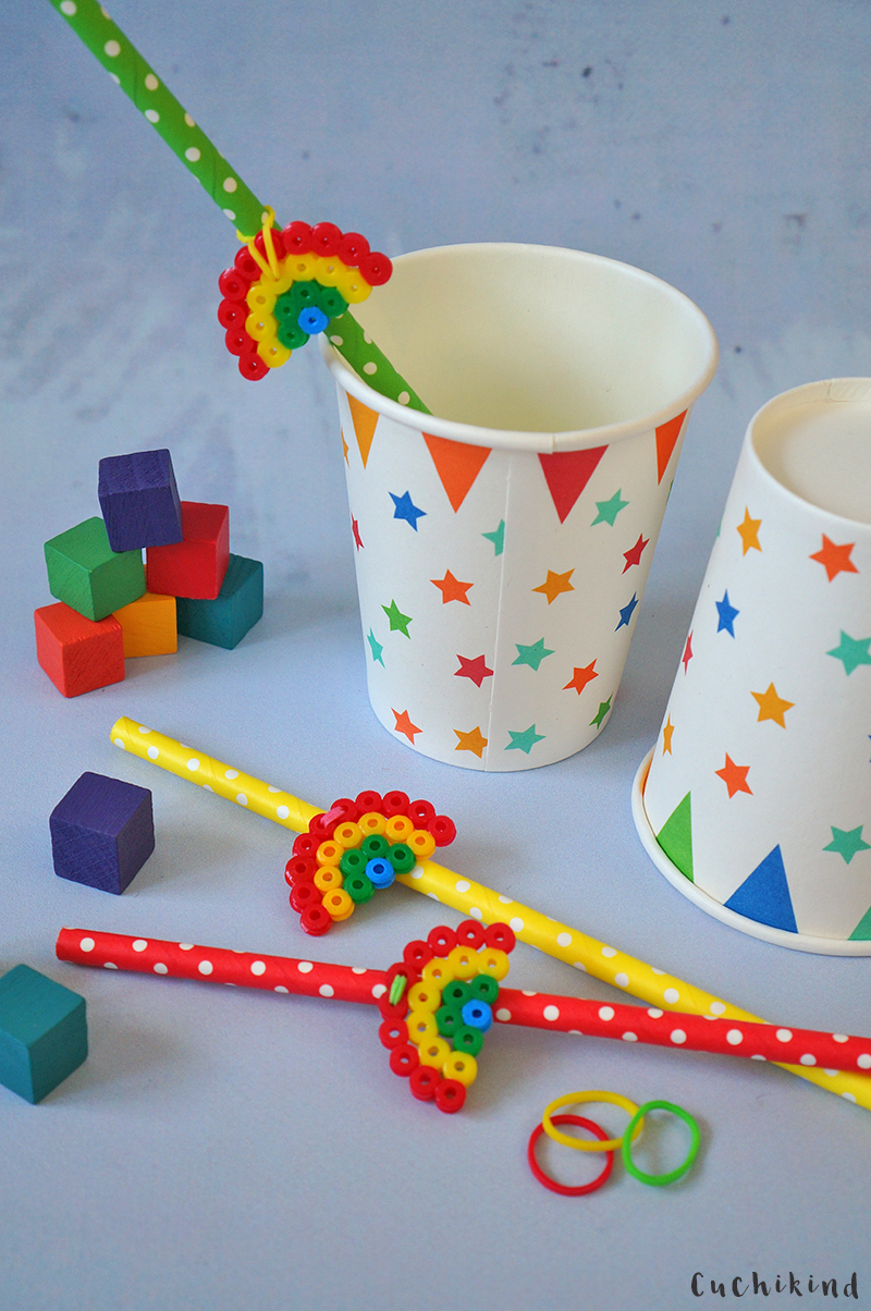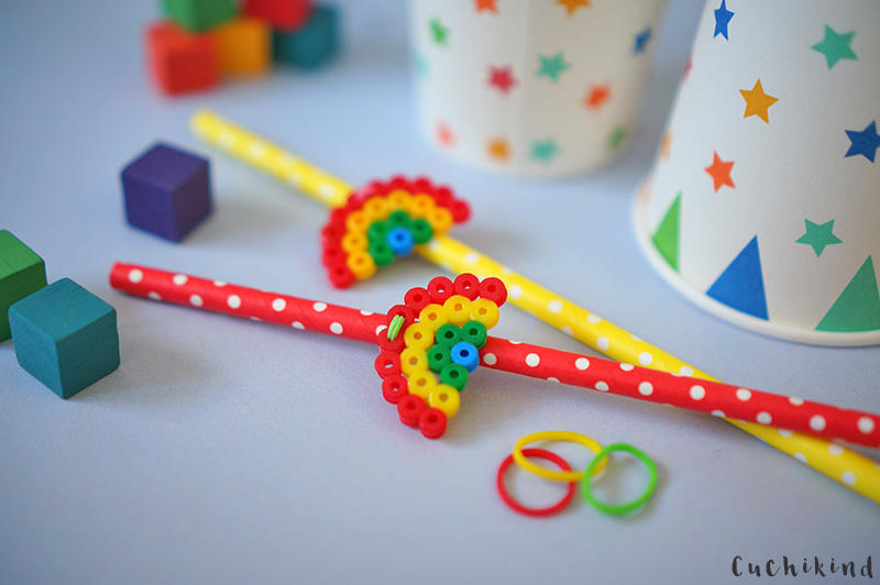 Deko Regenbogenparty 1: Bügelperlen-Strohhalme