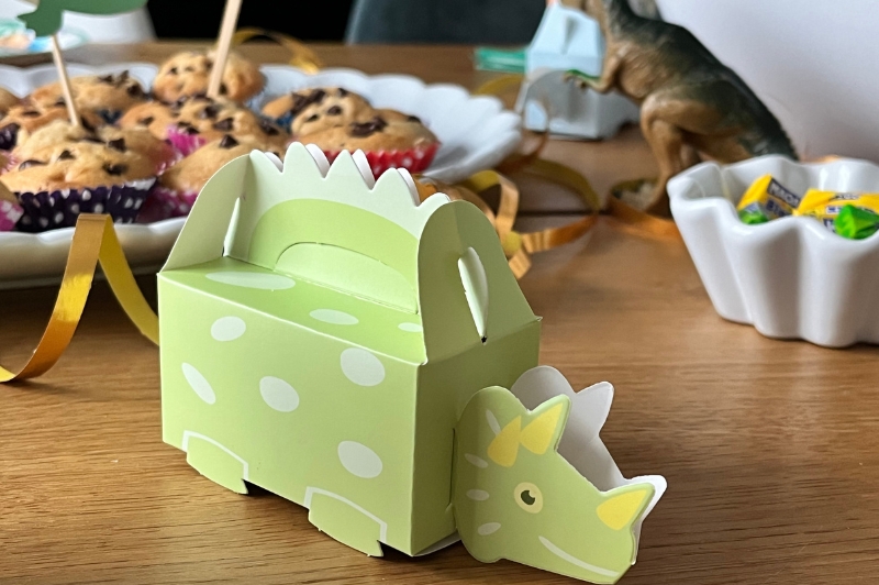 Die Dinosaurierparty war ein voller Erfolg! Vor allem die ungewöhnlichen Einladungen und das aufblasbare Dinokostüm haben dafür gesorgt, dass die Feier etwas ganz Besonderes war.
