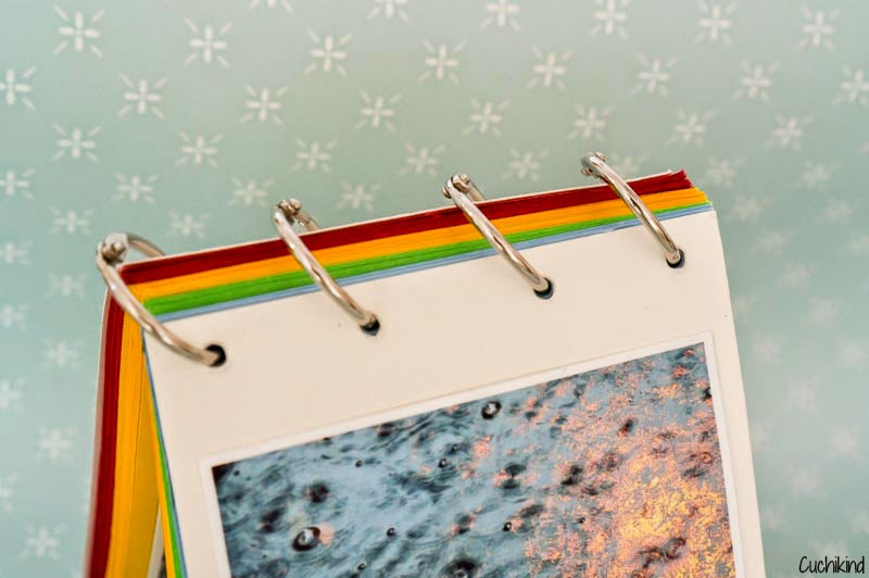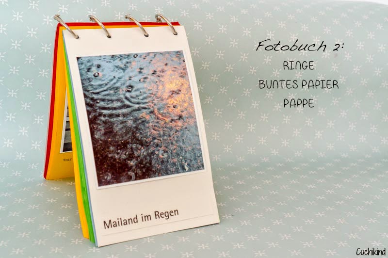 Die kleinen Ringe könnt ihr im Bastelladen kaufen. Ihr müsst nur Löcher in das Papier bohren, vorne und hinten eine etwas dickere Pappe benutzen und die Ringe festmachen. Fertig ist Fotobuch Nr. 2.