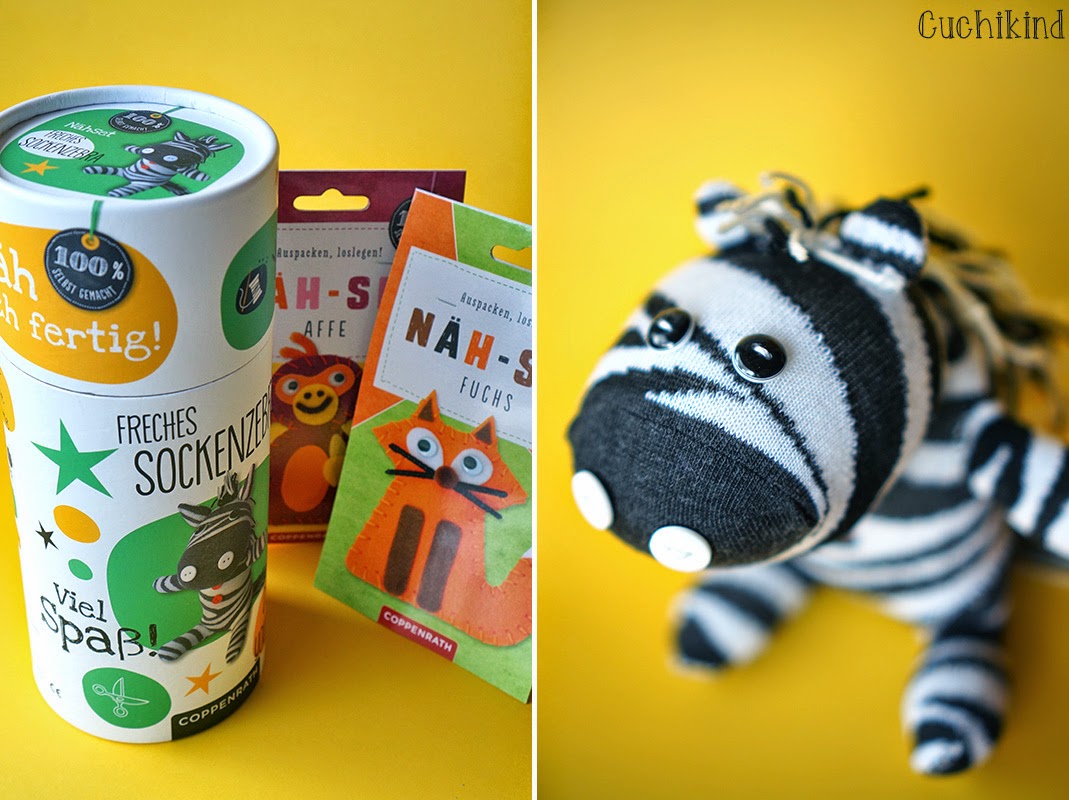 Ich will jetzt die Produkte von Coppenrath nicht schlecht machen, weil sie sind wirklich nett gemacht. Daran lag es auch nicht. Vor zwei Wochen erreichte mich ein total unerwartetes Päckchen mit dem Sockenzebra und ich war echt begeistert. Der Verlag hat keinerlei Verpflichtungen gestellt, dass ich darüber posten solle oder mir Geld dafür angeboten, also hätte ich es auch nicht machen müssen. Aber die Schachtel hat mich so angelacht und ich fand die Idee so niedlich, dass ich beschlossen habe, es innerhalb von zwei Tagen fertig zu machen, zu fotografieren und es euch zu zeigen. Ebenso ein Filzbastelset mit einem Affen. Beides sind Kindersets, auf der Packung steht ab 8 Jahren.