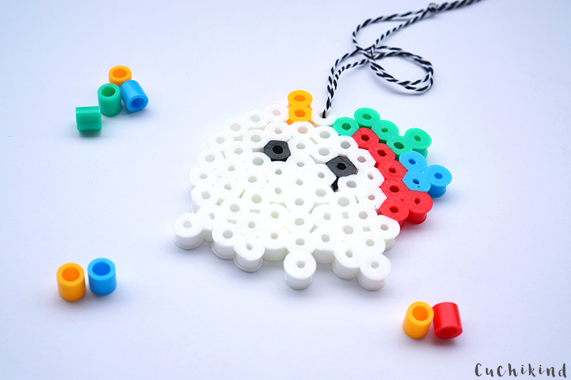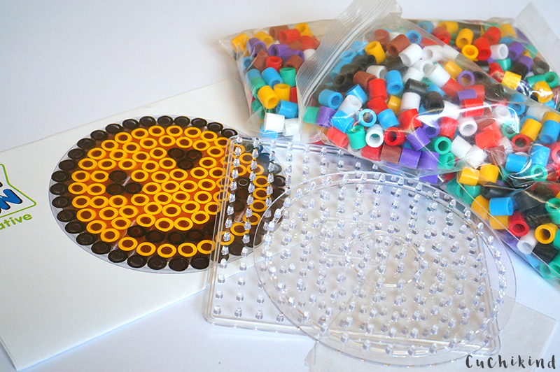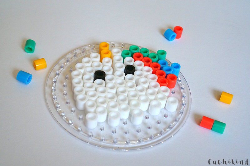 Die Maxi-Bügelperlen gibt es hier (20% Rabatt mit dem Code „cuchikind“, gilt für das ganze Sortiment, auch Bobbycars, Spiele, Holzspielzeug, schon mal an Weihnachten denken!). Das Motiv lässt sich aber auch mit den normal großen Perlen legen. Ihr braucht nur eine runde Platte.