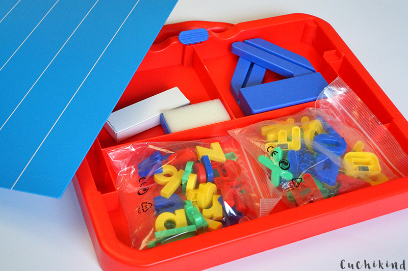 Die magnetische Minitafel kann man mit Aufsteller, Buchstaben, Schwamm und Kreide im Koffer mitnehmen. Gerade jetzt zum Schulstart ist das perfekt zum Verreisen oder einfach so, wenn Langeweile aufkommt.