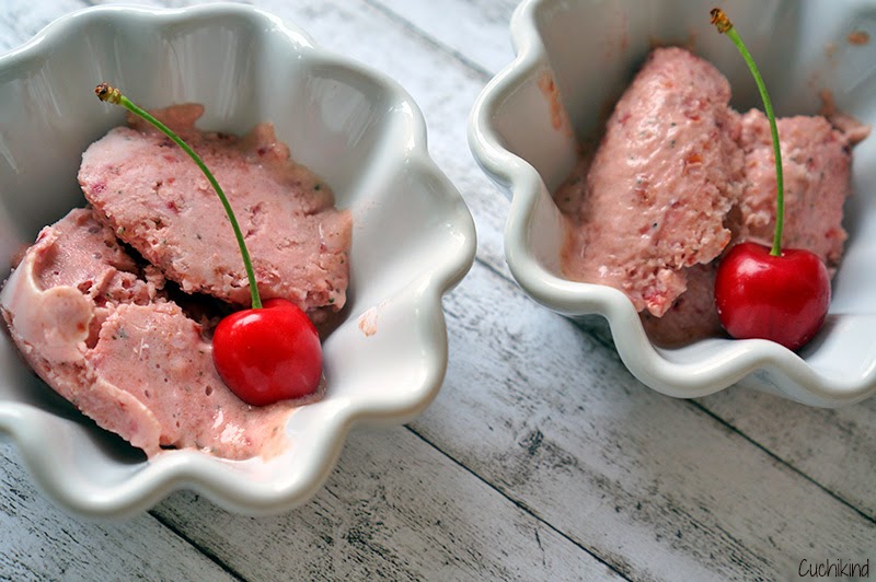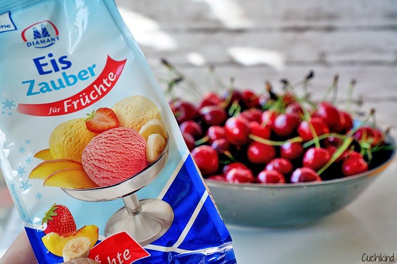 Ich habe mich dieses Mal für Kirschen und Minze entschieden. Irgendwie muss bei mir momentan immer überall Minze rein. Die Kombination ist sehr lecker. Wenn man das Eis nicht ganz so süß haben möchte, gibt man einfach weniger Pulver und statt dessen noch Joghurt oder Quark hinein, das schmeckt noch besser.