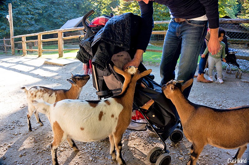 Auch der dazugehörige Zoo ist sehr schön gemacht, hat viele Spielbereiche und war erstaunlich leer, was wohl an der Nebensaison gelegen hat. Wie ihr seht, fanden die Ziegen Finns Kekse auch sehr schmackhaft 😉