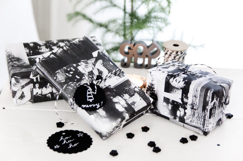 Das Papier schindet Rieseneindruck und ist trotzdem denkbar easy gemacht: Einfach hübsche, lustige und drollige Weihnachtsfotos aus den alten Alben fischen, auf dem Kopierer anordnen und in Schwarzweiß kopieren. Und in Nullkommanichts hat man wunderbares DIY Geschenkpapier. Wenn man das Ganze dann noch mit schöner passender Kordel und hübschen Geschenkanhängern kombiniert, hat man garantiert eine Geschenkverpackung, über die sich jeder Beschenkte unterm Weihnachtsbaum freuen wird!