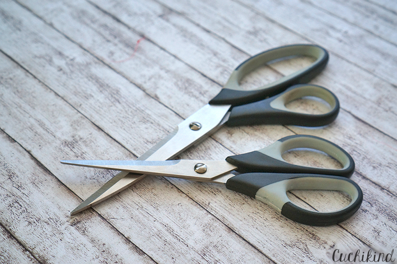 Mehrzahl deshalb, weil ich eine Stoff- und eine Papierschere besitze. Das ist wichtig, da die normalen Scheren den Stoff ausfransen. Auch super sind Zickzack-Scheren, um den Stoffrand davor zu schützen, dass er sich auflöst.
