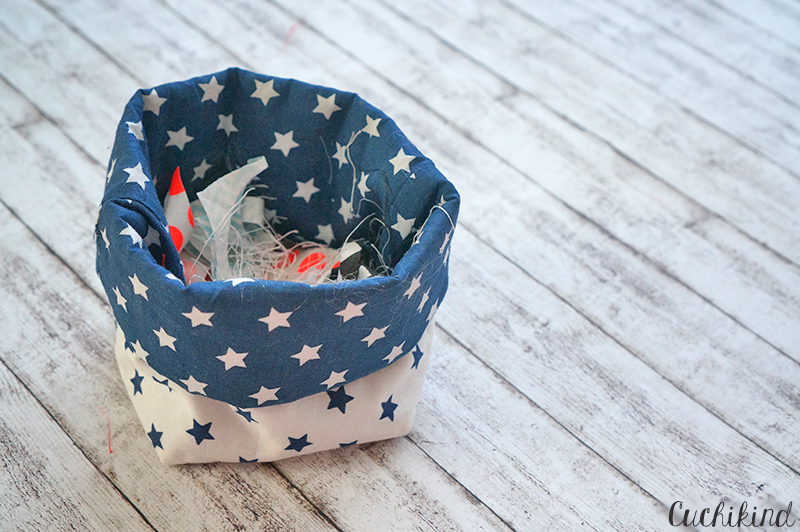 Das muss nicht zwingend ein Utensilo sein, es eignet sich aber sehr gut zum Müllsammeln. Beim Nähen fallen ständig Faden- und Stoffreste an, die am besten nicht irgendwo auf dem Tisch rumfliegen. Ich sammele so lange bis es voll ist, dann leere ich es aus. Wenn ihr wissen wollt, wie man ein Utensilo ganz schnell selber macht, dann schaut mal hier.