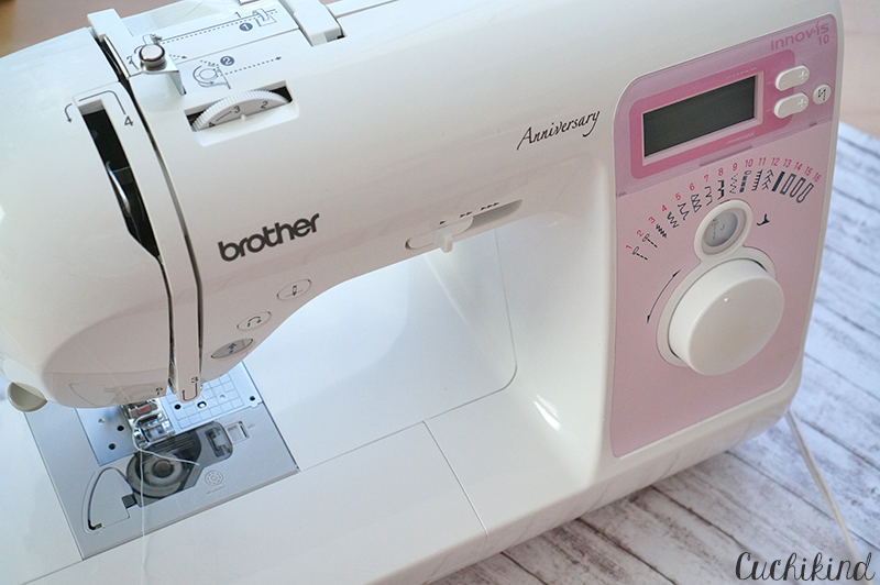 Zuerst mal braucht man natürlich eine gute Nähmaschine. Ich habe mich in einem Spezialgeschäft hier in Frankfurt beraten lassen und mir wurden auch verschiedene Modelle vorgeführt. Entschieden habe ich mich für die Brother Anniversary (Partnerlink*), die wirklich toll ist. Für das, was sie bietet, ist sie nicht teuer und sie hält bei mir schon mehrere Jahre ohne zu mucken. Sie hat eine digitale Anzeige, zeigt genau an, wo man wie einfädeln muss, kann auch Knöpfe annähen, ist sehr leicht bedienbar und hat einen Einfädeler. Die perfekte Einsteigermaschine!