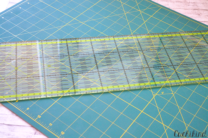 Das passt zum Schneideroller oben. Ich nutze es selten, weil es mir immer zu aufwändig ist, es rauszuholen, aber es ist sehr praktisch. So weiß man direkt, ob der Stoff gerade liegt und schneidet nicht den Tisch ein.