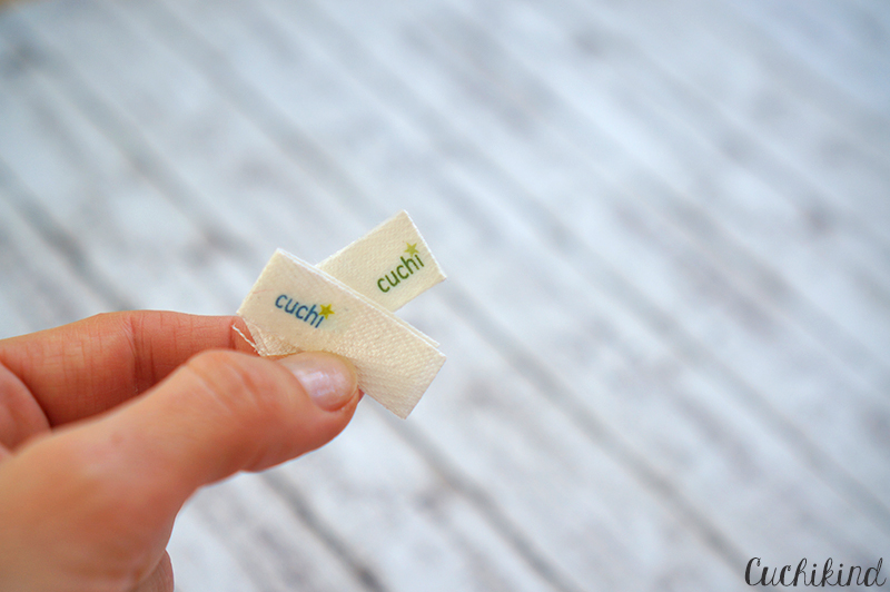 Ich habe aufgebügelte Label, die ich immer direkt nutzen kann. Man näht sie einfach irgendwo mit ein. Momentan vergesse ich es aber eigentlich immer oder greife lieber zu SnapPap (Partnerlink*). Dieses kann man einfach um den Stoff legen, annähen und anschließend beschriften. Sieht aus wie Leder, ist aber Papier.