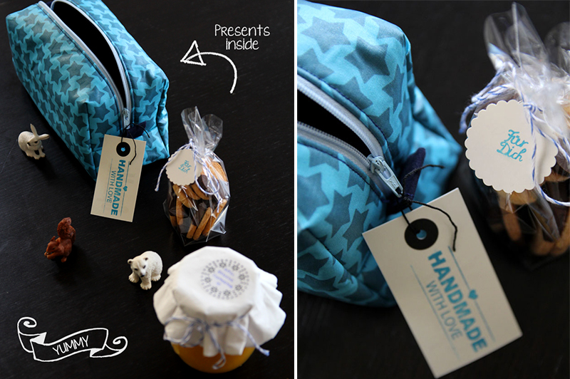 Diese Geschenkverpackung ist sogar „wiederverwertbar“ und damit eigentlich das Highlight. Im Inneren verbergen sich bei mir selbstgemachte Plätzchen und selbstgemachte Marmelade. Da kann man natürlich auch etwas kaufen und zum Beispiel schlicht in Folie verpacken. Oder ohne Verpackung ins Täschchen legen. Und dann lässt man einfach mal die Geschenkverpackung das Besondere am ganzen Geschenk sein.