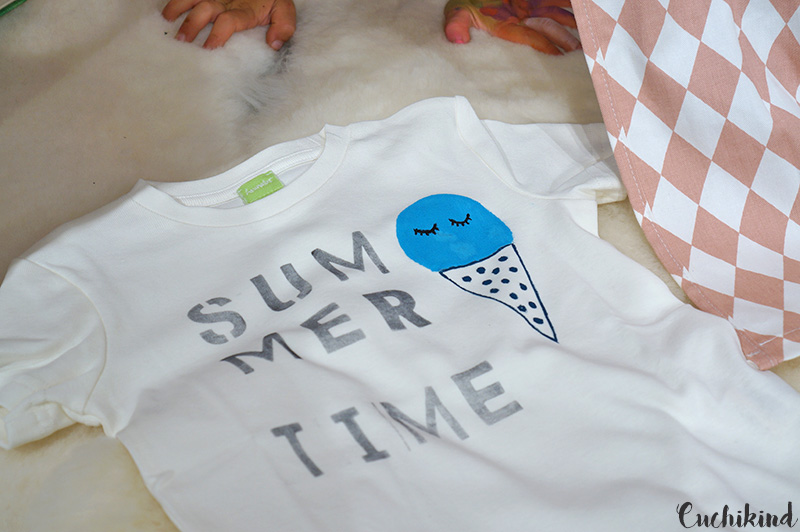 Für mich als DIY-Blogger war es natürlich toll, dass wir ein T-Shirt bestempeln und bemalen durften. Damit der Sommer endlich doch mal kommt, habe ich mich für ein Eis mit der passenden Aufschrift entschieden.