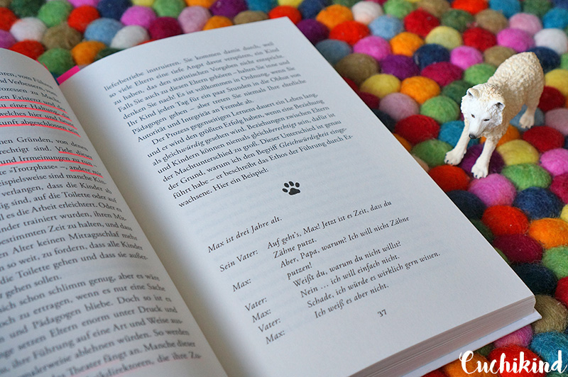 Ein tollen Hinweis finde ich, dass man von seinem Kind genauso viel lernen kann wie man ihm beibringt. Ein gegenseitiges Geben und Nehmen eben. Viele Eltern sind so versteift darin, wie ihr Kind sein und sich Verhalten soll, machen es zu ihrem Projekt und vergessen dahinter das Interesse und die Kreativität des kleinen Menschen. Leider passiert das durch den Druck der Außenwelt immer wieder ohne dass wir es merken. Kindergärten haben da einen großen Einfluss. Unserer bietet zum Beispiel keinen Mittagsschlaf an, so dass Finn von einen Tag auf den anderen lernen musste, nicht mehr zu schlafen, auch wenn er das anfangs noch gebraucht hätte. So hatte ich meist ein zickiges Kind zu Hause, das zu nichts Lust hatte, weil er einfach total müde war. Das hat sich Gott sei dank schnell gegeben, zeigt aber, dass wir nicht immer die Wahl haben, die Wünsche unseres Kindes zu erfüllen.
