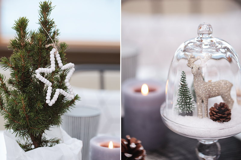 Zweige und Zapfen sollte man in der Weihnachtszeit sowieso immer im Haus haben. Ein kleines Tannenbäumchen sieht auf dem Tisch auch immer schön und weihnachtlich aus. Das Bäumchen braucht nicht viel Wasser und kann deswegen getrost in eine Butterbrotpapiertüte eingeschlagen werden.