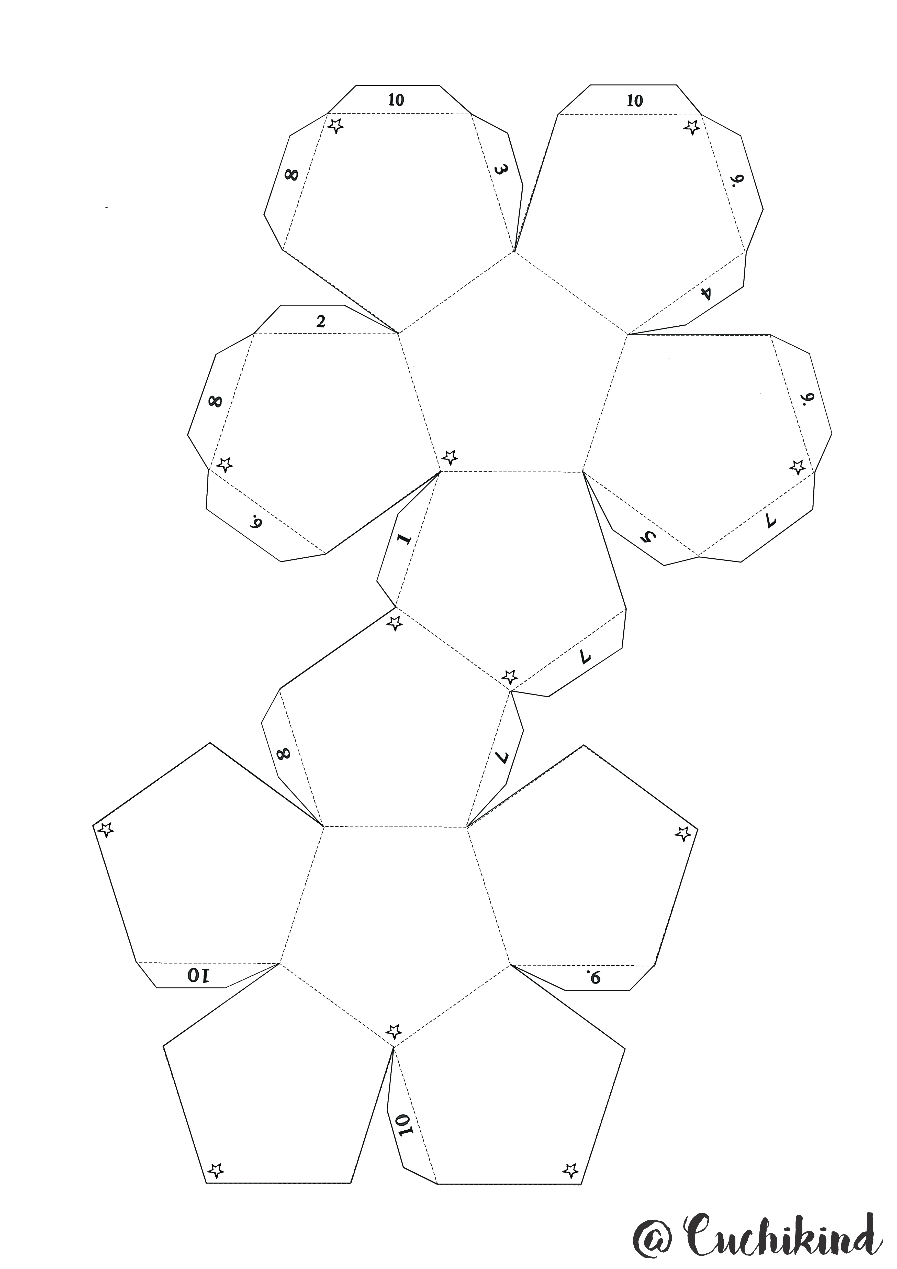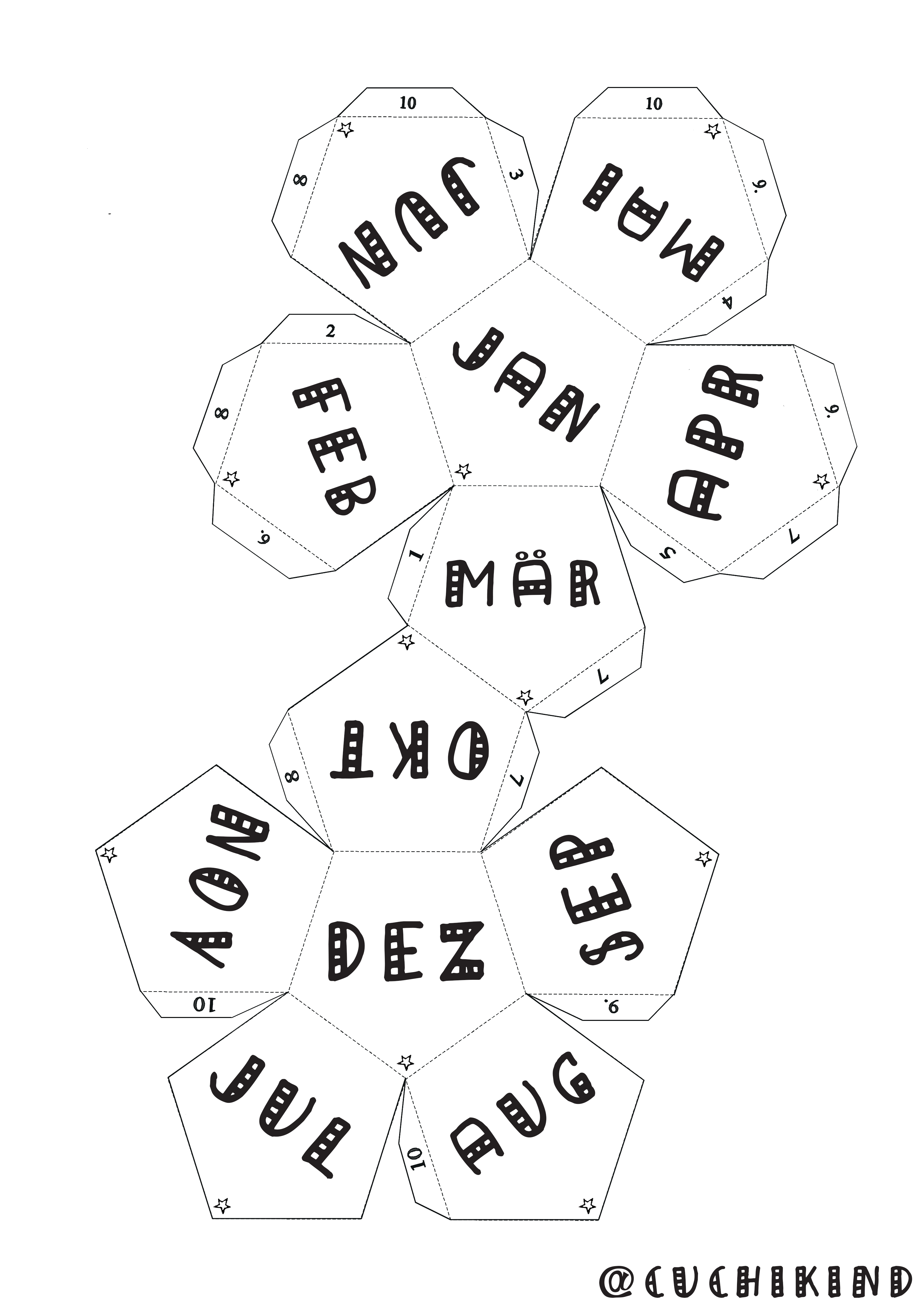 Unten im Post findet ihr das Anmeldeformular zum Newsletter und die Dateien zum Runterladen. Wenn euch der Dodekaeder in DIN A4 zu klein ist, könnt ihr die Datei einfach in zwei Teilen ausdrucken und nachher wieder zusammen kleben.
