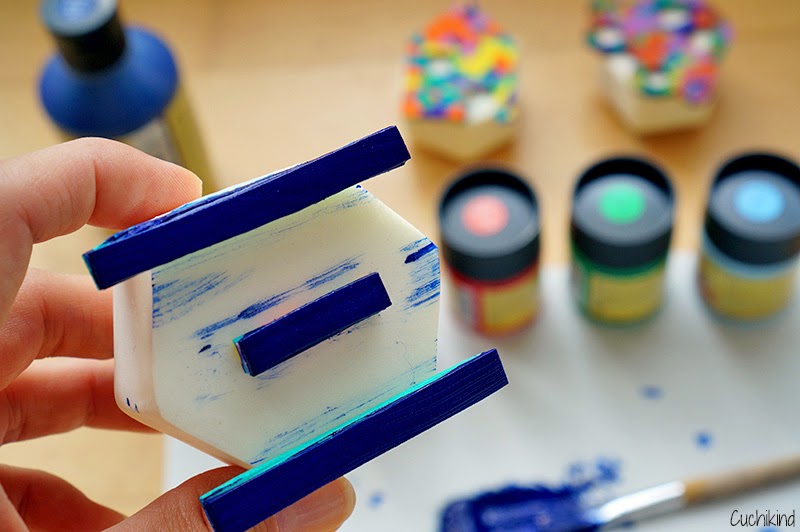 – Wenn ihr die Farbe wechselt, wascht den Stempel richtig gut aus und trocknet ihn auch ab, sonst mischen sich die Farbreste mit der neuen Farbe.