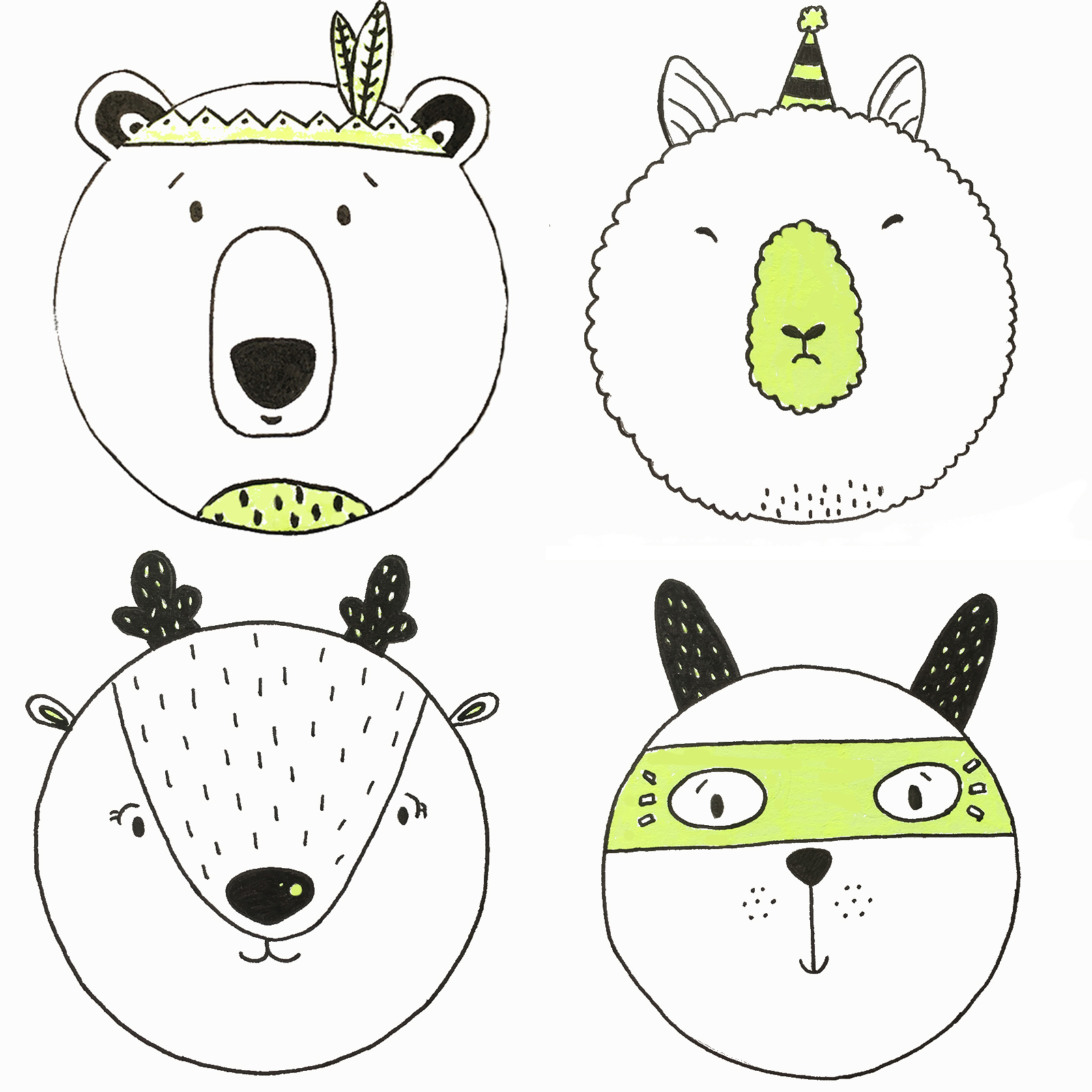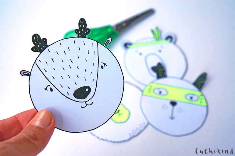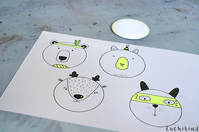 Ihr habt ja sicher schon einige Kletties, dann könnt ihr sie einfach als Vorlage für eure dünne Pappe nutzen. Zeichnet mit einem Bleistift einmal außen herum und malt dann lustige Gesichter in der Kreis. Außerdem Ohren, Hörner, Partyhütchen, alles, was euch so einfällt. Wenn euch gefällt, was ihr gezeichnet habt, dann könnt ihr das mit einem schwarzen Fineliner nachmalen und einige Stellen färben. Natürlich müsst ihr hier auch keine Tiere nehmen. Alles ist möglich.