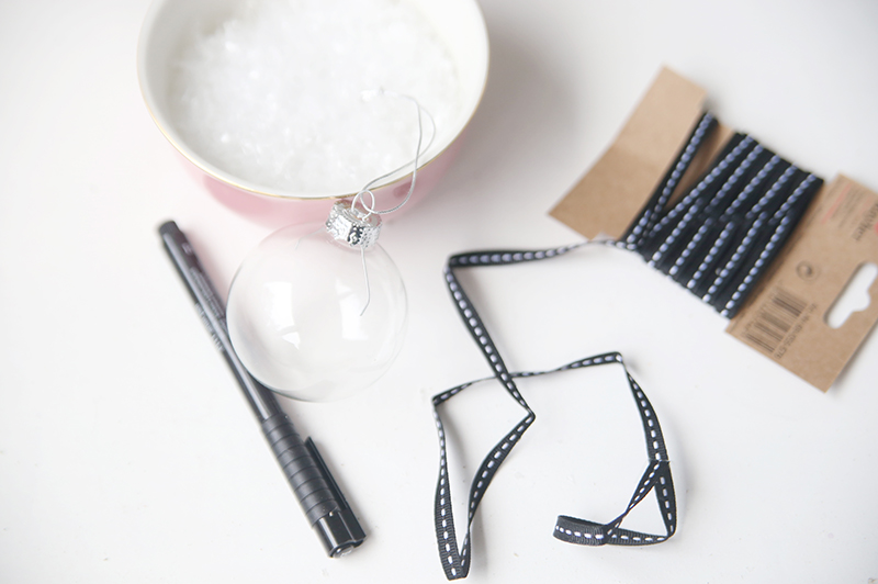 Mein kleines Bäumchen zieren in diesem Jahr schicke, transparente Kugeln, die ich mit Kunstschnee gefüllt habe. Das i-Tüpfelchen sind weihnachtliche Wörter und Sprüche, die ich mit Hilfe eines Brushpens darauf gelettert habe. Und das Beste: Das geht wirklich schnell und klappt noch vor Heiligabend!