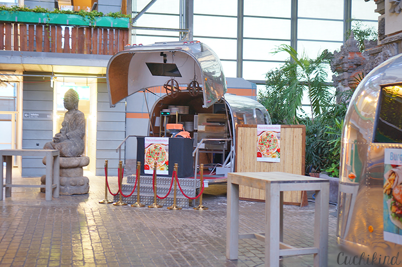 Es gibt viel mehr Hotelzimmer als ich erwartet habe. Gleich am Eingangsbereich hat man die Möglichkeit, in einer Ritterburg zu schlafen, es gibt Zimmer direkt am Frühstücksbereich, in der Nähe der Wellnesszone oder direkt beim Kinderspielplatz. Wir haben uns für diese Piratenzimmer entschieden, damit Finn schnell unterhalten werden kann. Beim nächsten Mal würde ich aber eher ein Zimmer in der Mitte der Halle bevorzugen, weil die Wege doch sehr weit sind, wenn man mal was vergessen hat. Wir hatten ein Premiumzimmer, das sehr komfortabel war. Außerdem hatten wir reichlich Platz und eine Regendusche. Wenn man möchte, kann man auch in einfachen Zelten übernachten, in denen zwei Matratzen liegen. Es gibt hier einen Duschraum und sogar Aufladezellen für Handys.