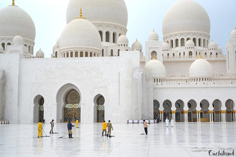 Die Führung wird stündlich angeboten und dauert etwas eine Stunde. Ein sehr netter Herr hat uns viel erklärt und uns den größten Teppich der Welt gezeigt. Ich habe einiges über die Betkultur der Muslime gelernt und war fasziniert über die Inneneinrichtung. Die Kronleuchter sind übrigens von Swarovski. Draußen in einem kleinen Pavillon wird 24h lang über Lautsprecher gebetet. Ich muss sagen, das hat mich schon sehr beeindruckt.