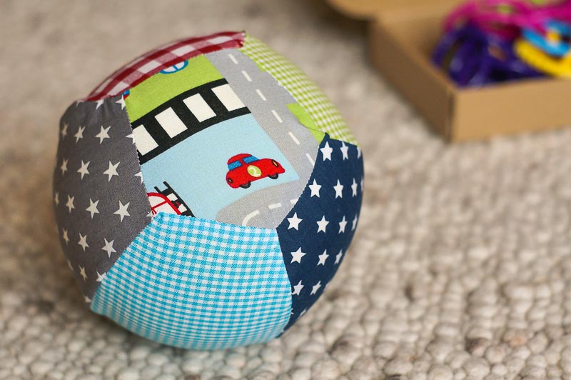 Habt ihr schon mal eine Luftballonhülle selbstgemacht? Ihr näht eine Hülle, in der man dann einen Luftballon aufblasen kann und schon hat man einen Ball für die Wohnung. Perfekt auch zum Mitnehmen, weil es keinen Platz wegnimmt. Die Farben und Stoffe könnt ihr dabei ganz individuell auswählen. Leider habe ich damals keine Zwischenschritte fotografiert, ich versuche trotzdem, es euch so zu erklären, dass ihr es nachmachen könnt.