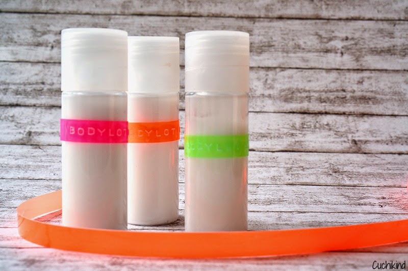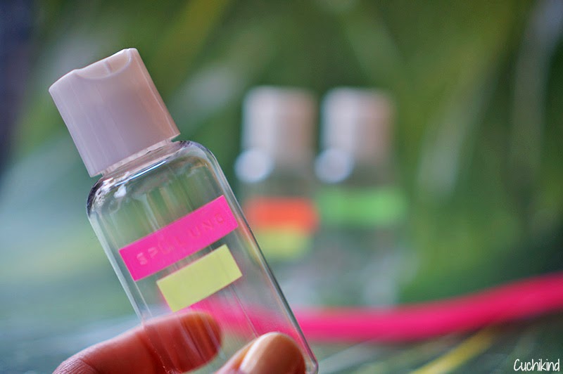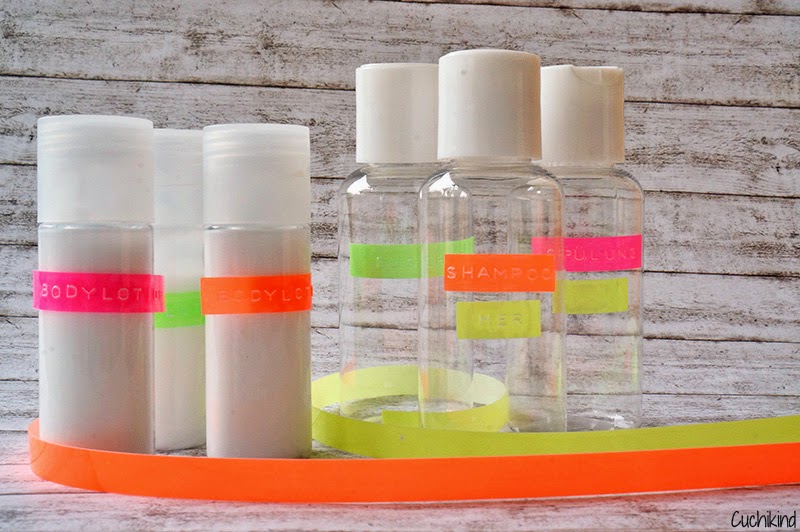 Ich habe die Flaschen dieses Mal beschriftet, weil ich nach dem letzten Urlaub nicht mehr wusste, was in den einzelnen Fläschchen war. Ich habe Shampoo, Conditioner, Bodylotion und Gesichtswasser abgefüllt.