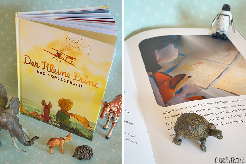 Das „Vorlesebuch vom kleinen Prinzen“ vom Loewe-Verlag ist eigentlich erst ab 4 Jahren, weil es mehr Text als die anderen Bücher enthält und etwas schwerer zu verstehen ist. Es ist unsere momentane Abendlektüre. Ich lese Finn immer 2-3 Kapitel daraus vor. Die Geschichte des kleinen Prinzen kennen wahrscheinlich die meisten von euch. Ich dachte auch, dass es einfach eine Neuauflage des Klassikers wäre, aber die Geschichte ist ganz neu. Alles dreht sich um ein kleines Mädchen, dass nicht viel Spaß im Leben hat und sich mit dem alten Piloten des Nachbargrundstückes anfreundet. Dieser erzählt dem Mädchen die Geschichte des kleinen Prinzen. Ich lese die Geschichte selbst so gerne, einfach wunderschön.