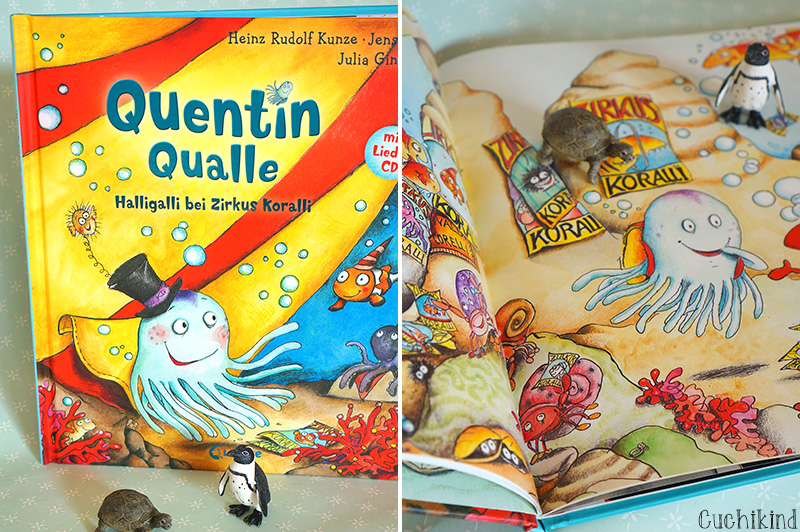 Quentin Qualle kannte ich vorher nicht, obwohl schon einige Teile beim Loewe-Verlag erschienen sind. Mich hat das bunte Cover angesprochen und dass eine Lieder-CD beiliegt. Die Zeichnungen sind wieder toll, die Geschichte ist auch süß, nur die CD fand ich nicht so toll. Zumindest nicht, um sie abends zum Einschlafen zu hören, die Lieder sind nämlich recht flott. Quentin Qualle hat eine große Familie und dieses Mal muss er die Zirkusvorstellung retten. Die Hauptattraktion ist verschwunden und Quentin macht sich auf, um sie zu suchen.
