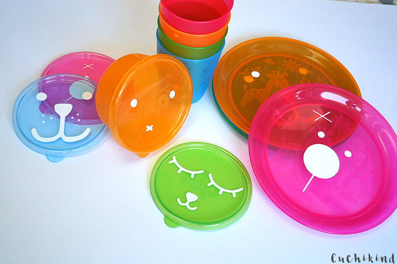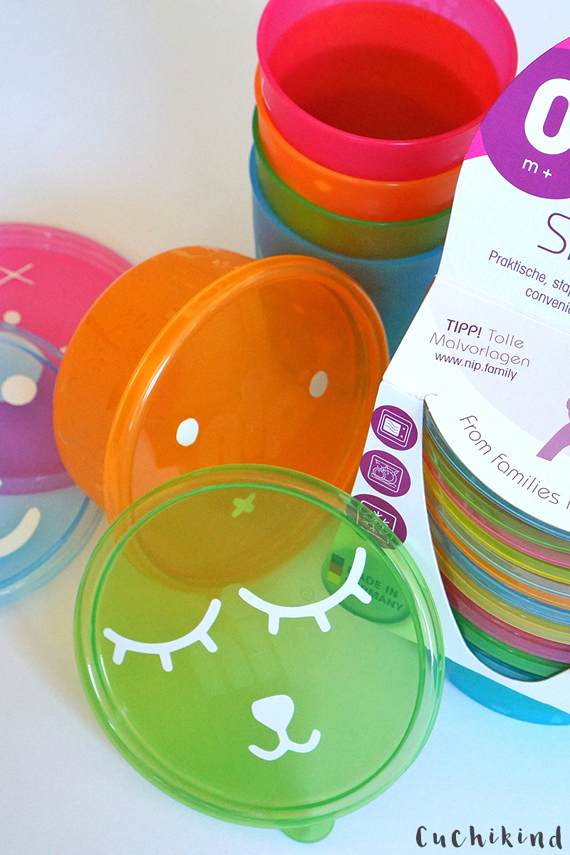 Wir haben die Becher in vier Farben, ebenso die Kinderteller und die kleinen Snackboxen mit Deckel sogar in sechs. Ben hat sofort verstanden, dass das farbenfrohe Plastikgeschirr nun sein ist. Das kann auch mal runterfallen und ist nicht gleich kaputt. Das Geschirr ist selbstverständlich für die Mikrowelle und die Spülmaschine geeignet, sonst macht es für mich keinen Sinn. Das habe ich auch schon ausprobiert und es sieht immer noch aus wie neu. In den Snackboxen kann man auch wunderbar Brei oder Ähnliches einfrieren. Meine letzten Dosen sind dabei kaputt gegangen, ich bin ganz dankbar, dass das jetzt besser klappt. Vor allem, dass wir mal Boxen haben, die ordentlich schließen. Kennst du, oder?