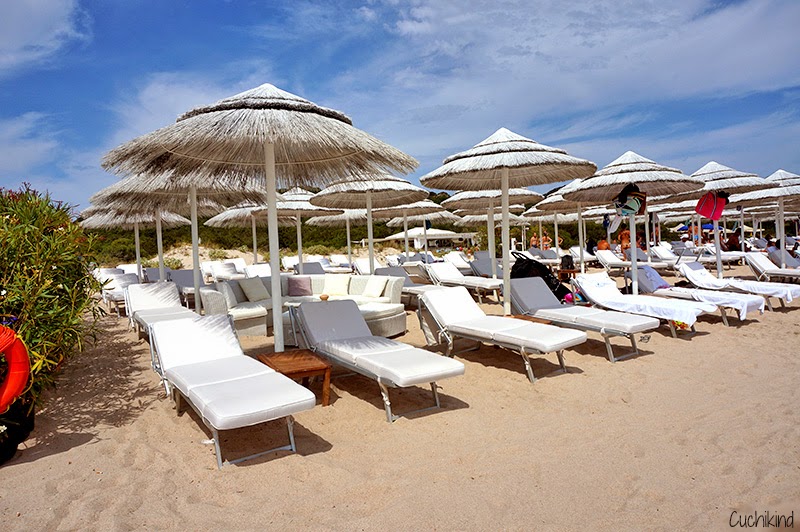 Mein Lieblingsstrand, an dem wir auch zweimal waren. Es ist der längste Strand der Costa Smeralda und hat ganz feinen, fast weißen Sand. Das Wasser ist richtig türkis und ein Besuch lohnt sich alleine wegen der vielen Yachten, die dort ankern. Es gibt mehrere Imbissstände, wobei der Preis eher nach Restaurant klingt. Eine Liege kostet hier übrigens 70 Euro am Tag. Hä? Dafür kann ich mir ja eine eigene kaufen. Und jetzt kommt es: Die Liegen waren echt alle ausgebucht. Hui. Jetzt könnt ihr euch das Publikum da vorstellen. Dabei musste ich sehr lachen, dass genau diese reichen Damen sich die gefaketen (schreibt man das so???) Taschen gekauft haben, die da so illegal am Strand verkauft wurden. Parken kostet übrigens 7,50 Euro am Tag und macht das! Wir kamen nämlich auf die glorreiche Idee, uns einfach an den Weg zu stellen und das kostet dann 28 Euro Strafe ;-(