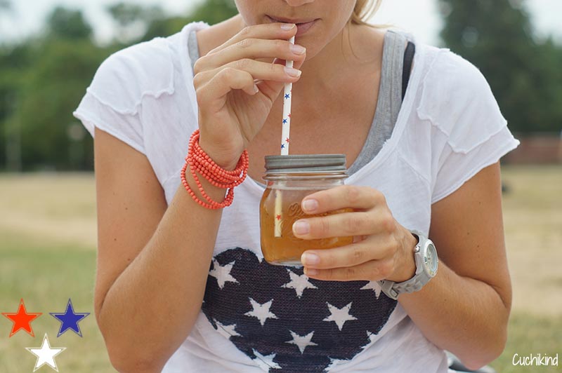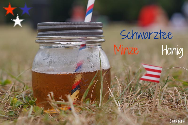 Der Eistee besteht nur aus schwarzem Tee (Darjeeling), frischer Minze und Honig. Am besten schon abends kochen und dann über Nacht in den Kühlschrank packen.