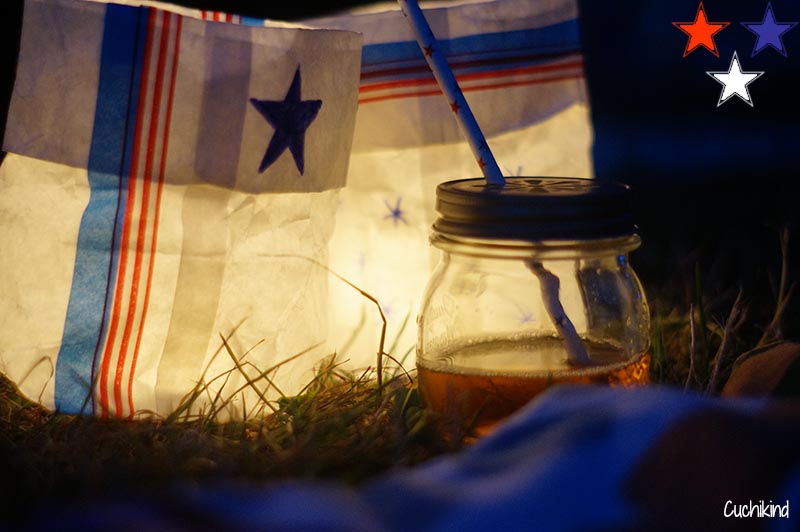 Die Papiertüten für die Teelichter habe ich mit Tapeband beklebt und die Sterne aufgemalt. Die Strohhalme und die Deckel für die Gläser, die es mal bei Edeka im Angebot gab, habe ich bei Etsy bestellt.