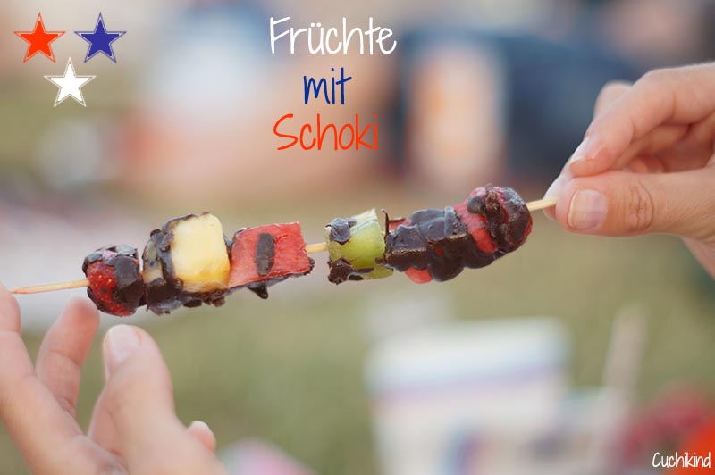 Das Beste kommt bekanntlich am Schluss. Der Nachtisch bestand aus aufgespießten Früchten, die ich einfach mit Zartbitter-Kuchenglasur begossen habe. Das ist sooo lecker!