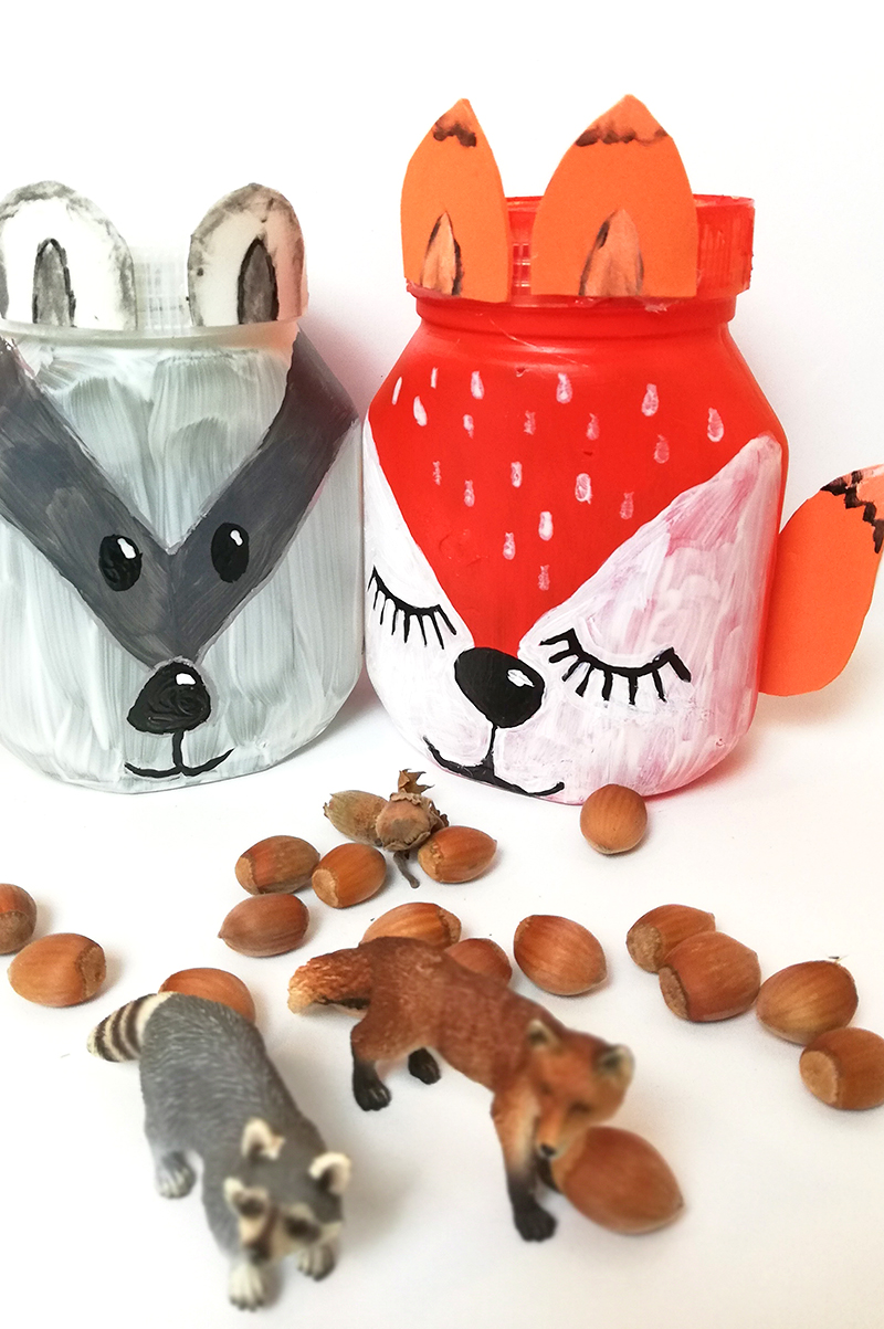 Die Ohren und den Schweif kann man super aus Moosgummi machen. Wenn ihr euch unsicher seid, könnt ihr euch zuvor eine Papp-Schablone anfertigen. Mit ein wenig Fellfarbe sehen auch die Ohren und der Schweif gleich ganz toll aus. Jetzt noch an Glas und Deckel festkleben.