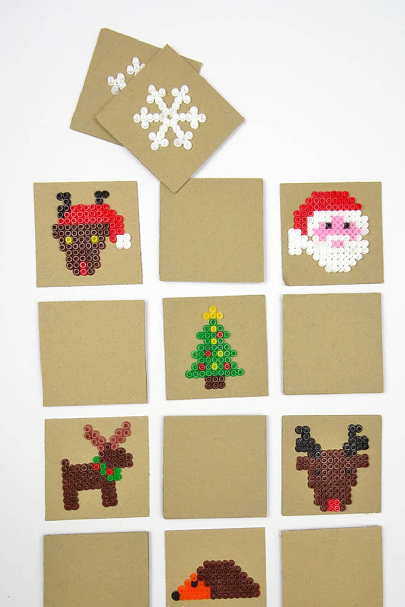 Mit den Bügelperlen bastelt ihr zuerst Tiere und weihnachtliche Motive. Denkt daran, für das Memory müssen alle Bügelperlenbilder zweimal gesteckt werden.