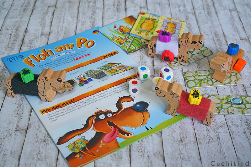 Unser absoluter Favorit. Das Spiel hat sehr leichte Spielregeln und ist unglaublich lustig. Der eigene Hund hat ein Filzfell, an das sich die Flöhe hängen. Je mehr Flöhe man hat, desto weiter darf man gehen. Wird hier sehr gerne und immer wieder gespielt.