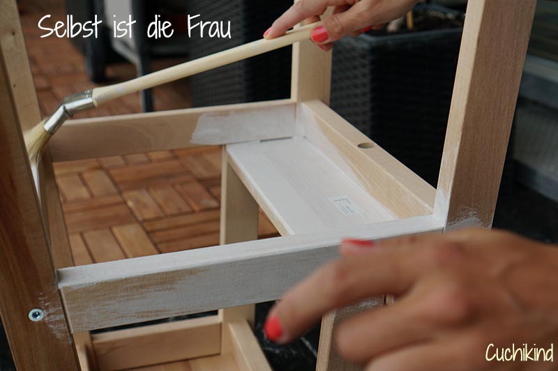 Den Tritthocker haben wir im Schwedenhaus gekauft für 12,99 Euro, glücklich war ich damit aber nicht so richtig. Finn sollte etwas haben, damit er sich die Hände waschen kann, aber ein bisschen kinderfreundlich sollte es ja auch sein.