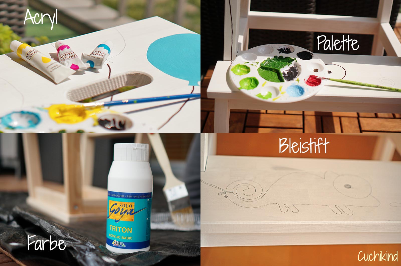 Heute ist wieder kreativer Dienstag und eigentlich hatte ich im Frage-Foto-Freitag-Post angekündigt, dass ich ein T-Shirt bemale. Aber … Kennt ihr das, wenn man völlig planlos vor einer Sache sitzt, total unkreativ ist und dann gar keinen Bock mehr darauf hat? Tsja, so war das mit mir und dem T-Shirt. Und deshalb habe ich einfach einen Tritthocker bemalt. So!