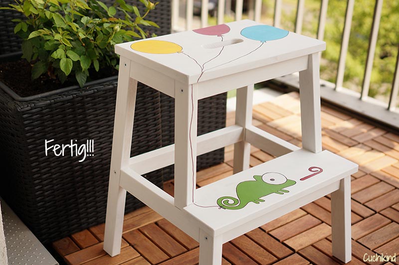 So sieht der fertige Tritthocker nun aus. Ich werde ihn aber noch mit Klarlack besprühen, weil ich Angst vor kleinen, dreckigen Kinderfüßen habe.
