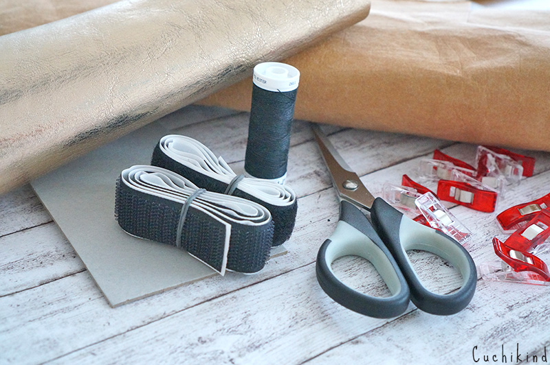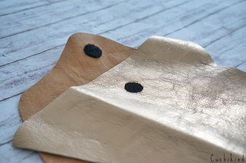 Zwei feste Stoffe, wie Leder oder SnapPap (Amazon Partnerlink), Filz ist auch möglich