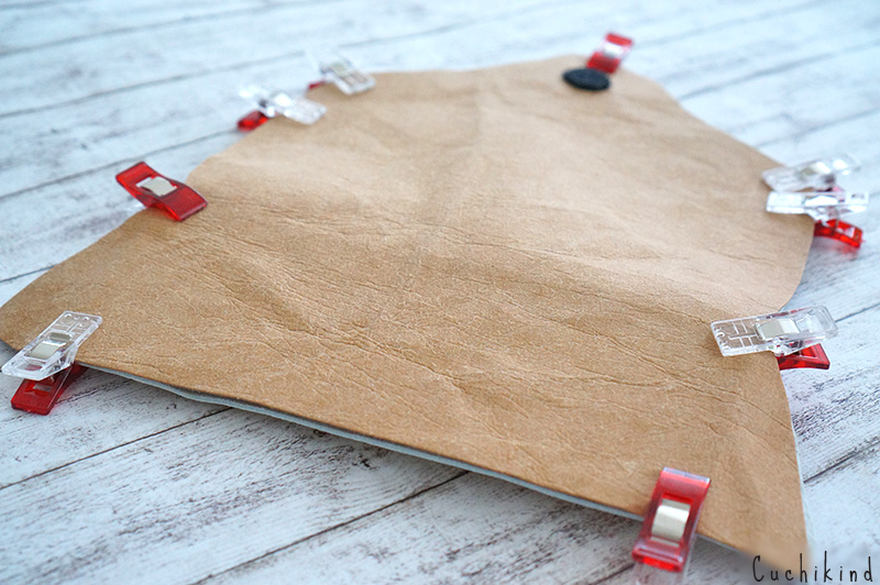 Die Pappe klebt ihr nun auf das SnapPap, also euren Innenstoff. Ich habe das mit doppelseitigem Klebeband gemacht.