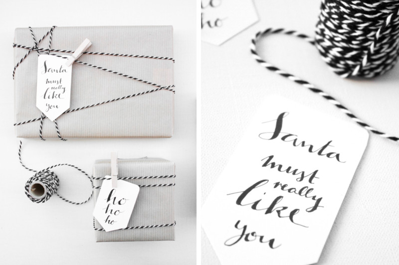 Hallo ihr Lieben, ich bin Lea von Rosy & Grey und ich freue mich sehr, dass ich mich heute hinter dem 9. Türchen verstecken darf! Ein ganzer Adventskalender rund um Geschenkverpackungs-Ideen – wenn das mal nicht genial ist. Ich finde ja, das Verpacken ist eines der besten Teile beim Herzaubern eines schönen Geschenks und die Möglichkeiten sind ja auch wirklich unendlich. Dieses Jahr gefallen mir allerdings schlichte Verpackungen am besten, weshalb ich mich für eine ganz einfache Variante entschieden habe: Kraftpapier, Bäckergarn in schwarz-weiß und selbstgebastelte Geschenkanhänger im Type-Style.